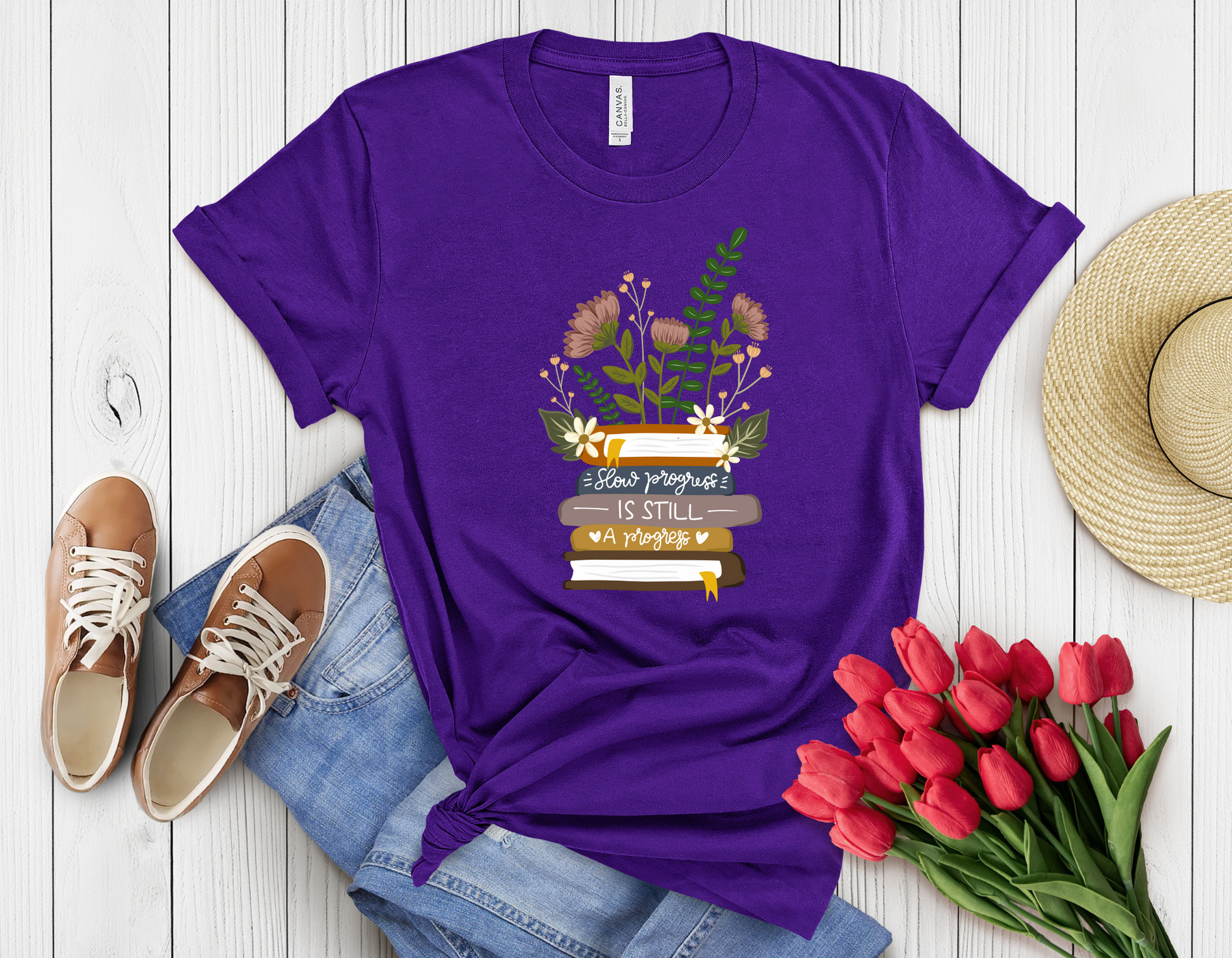 πΒ Stylish tee for book lovers β Features an open book with floral accents and the inspiring quote: "Every book is a new beginning."