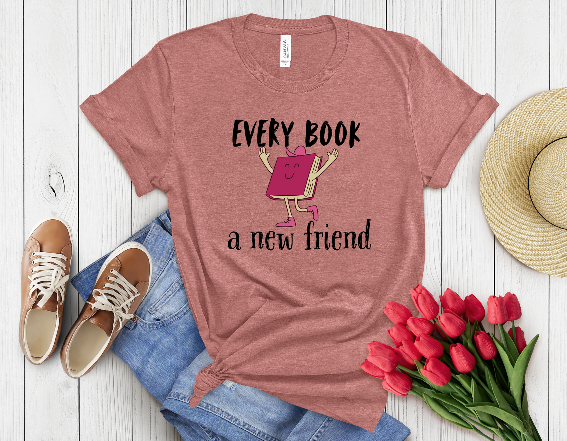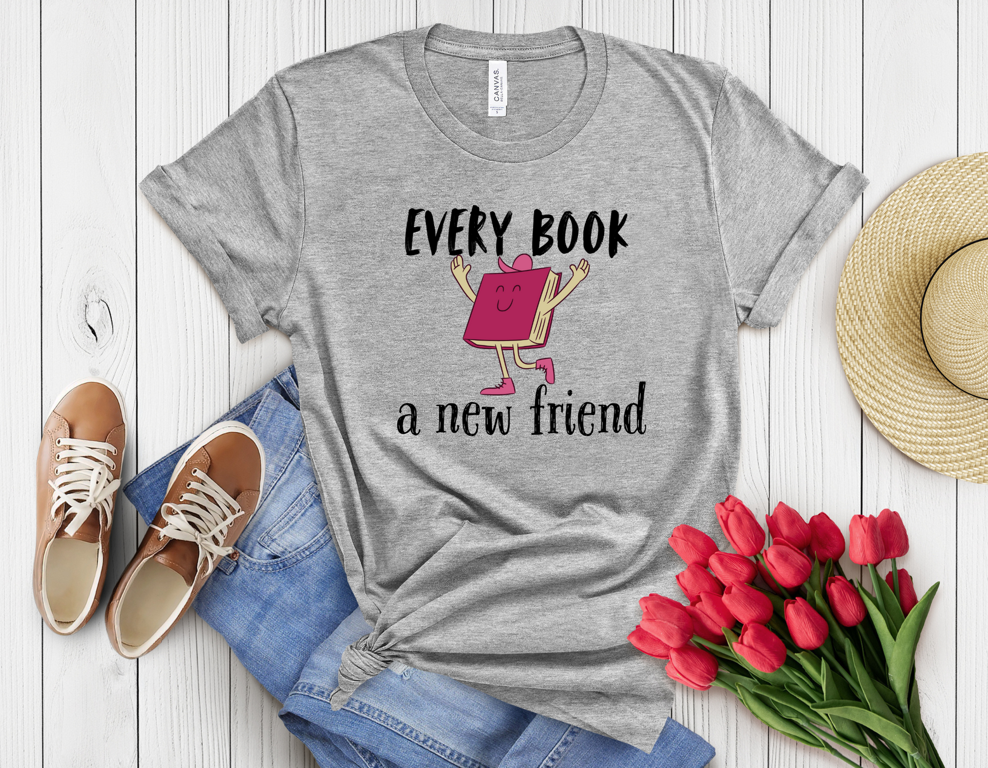 πΒ Stylish tee for book lovers β Features an open book with floral accents and the inspiring quote: "Every book is a new beginning."
